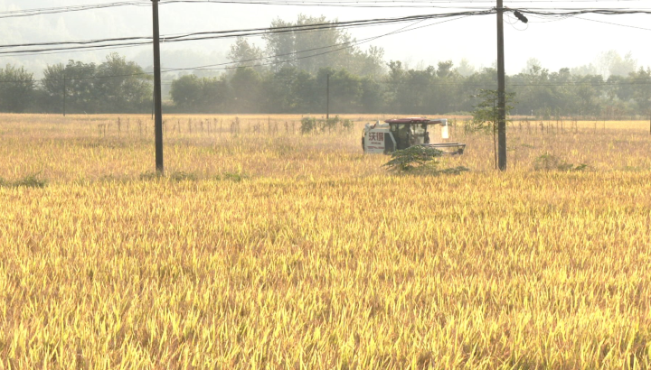 下符桥镇经济发展和农业农村服务中心农机业务负责人张咸枝:“下符桥镇水稻种植面积是33000多亩,99%以上都是收割机收割的。下符桥镇目前有收割机23台,正在抓住当前的晴好天气抢收,确保粮食安全,确保粮食颗粒归仓。”
