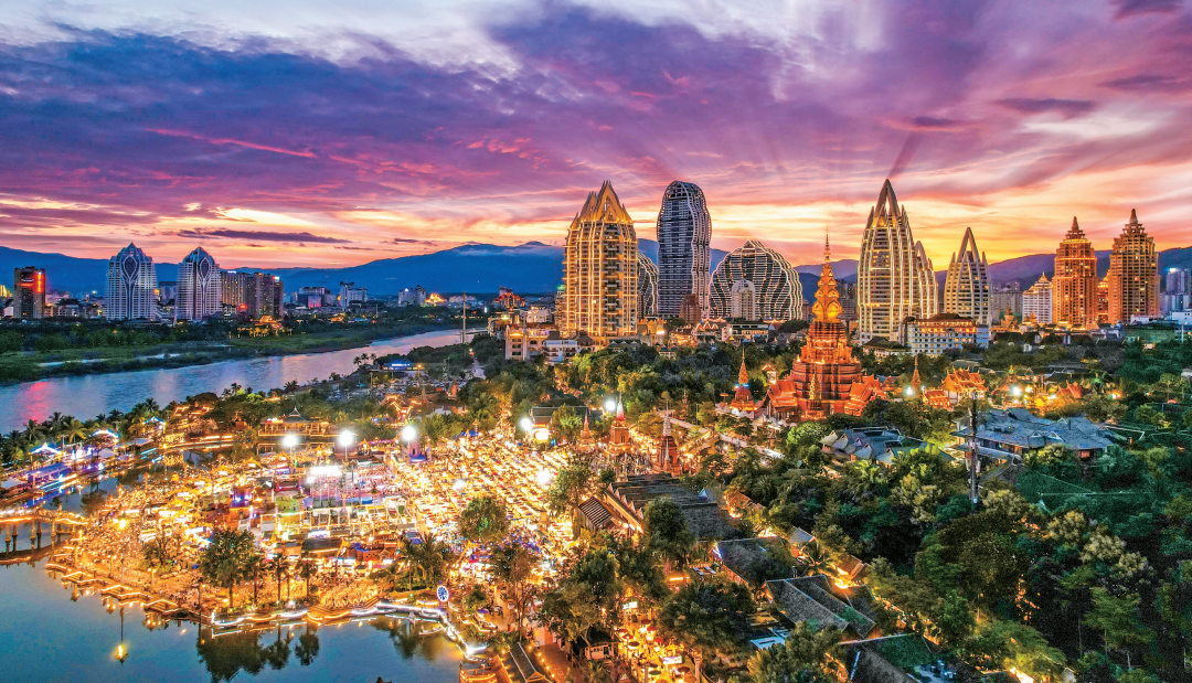 景洪市告庄西双景区夜景。中共西双版纳州委办公室供图