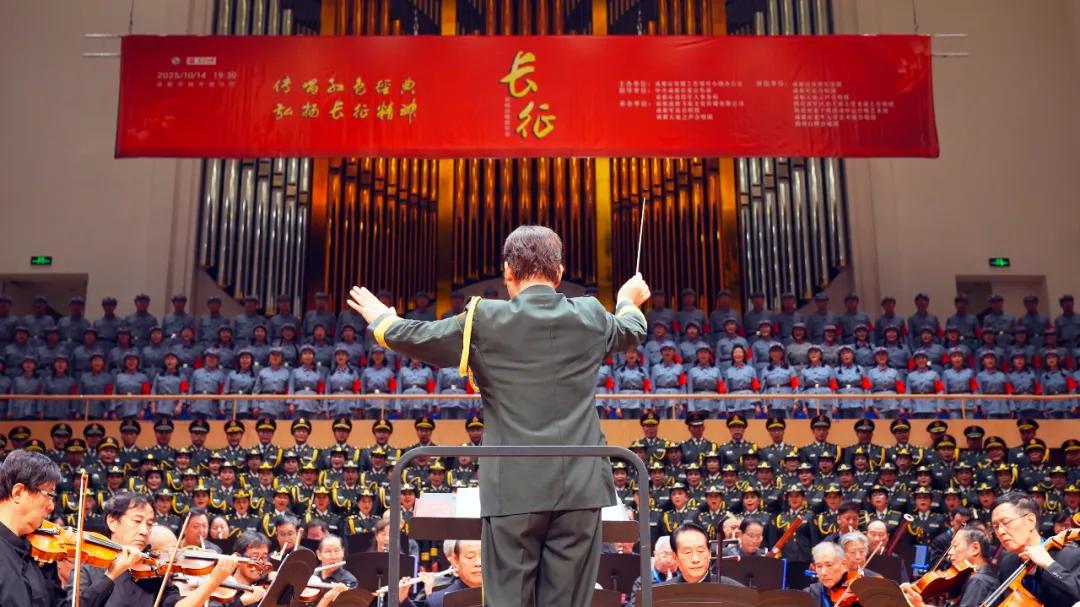 音乐会最为震撼的篇章——《长征组歌•红军不怕远征难》,在赖文毅少将的深情朗诵中层层铺陈,从悲壮告别到胜利大会师,十个乐章串联起伟大征程。合唱团与交响乐团的交融呈现,让信仰力量穿越时空,再次点燃全场情感。演出尾声,观众与演员齐声高唱《我和我的祖国》,掌声经久不息,现场氛围热烈感人。