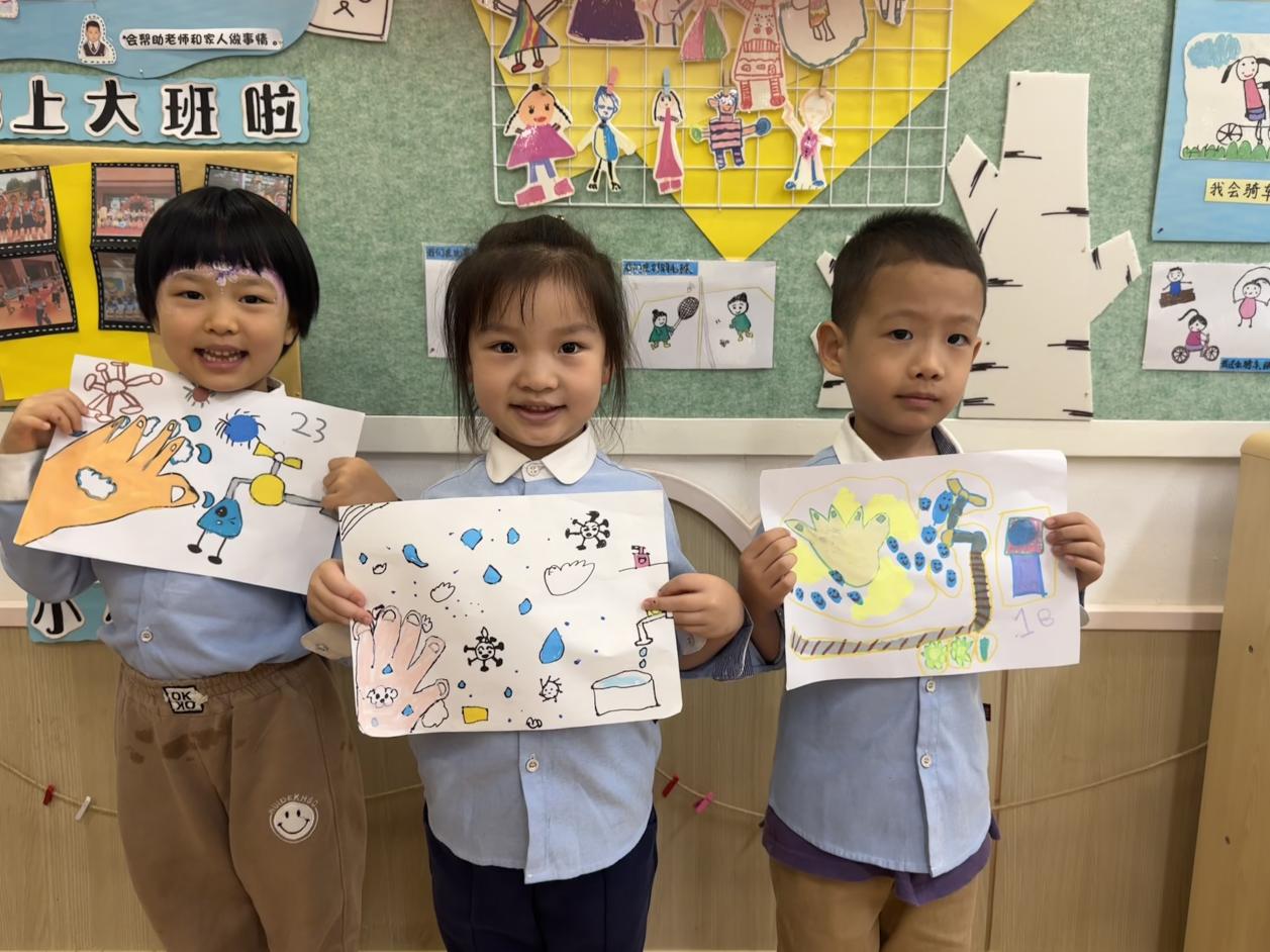 孩子们充分发挥想象力,用稚嫩的小手、五彩的画笔,绘出一幅幅充满童趣的洗手主题作品,将“正确洗手”与“健康防护”融入艺术表达。不仅自己成为了“洗手小卫士”,还传递了勤洗手、防疾病的健康理念。让卫生意识的种子在童心中生根发芽,守护每一位幼儿的健康成长。