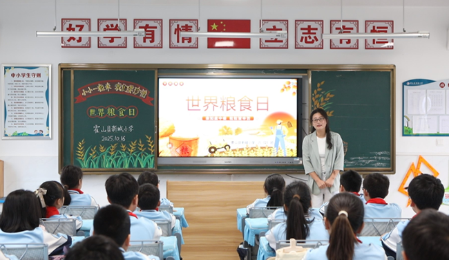 在霍山县新城小学,一场别开生面的主题班会正在进行。老师们通过生动案例,为同学们讲解世界粮食日的由来、我国粮食安全的现状与挑战,让大家直观地理解粮食安全的重要性。互动环节中,同学们踊跃发言,介绍日常生活中如何避免粮食浪费,分享自己的“节约小妙招”。