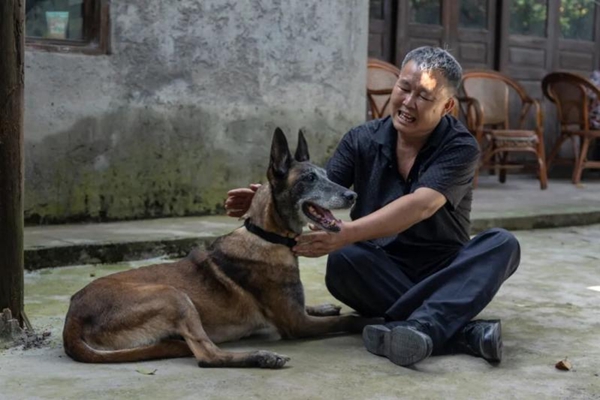 如今在自家小院里,身着便服的老何坐在水泥地上,没有训练时的急促口令,也没有行动时的惊心动魄,只有阳光洒落,照着这一对终于可以放慢脚步的老伙伴。