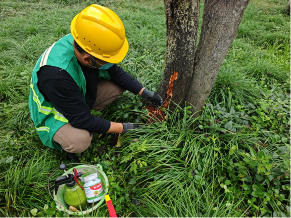 针对蛀干害虫对树木生长的威胁,合肥高新区城管大队联合公服公司启动蛀干害虫精准防治攻坚行动,按照“监测预警、物理防治、化学防治”综合防治体系,依托专业监测团队,采用人工巡查与设备监测相结合的方式,对辖区内法梧、柳树、樱花、红叶李等易受侵害树种进行全面排查,精准定位幼虫危害区,建立动态监测档案,确保“早发现、早处置”。在防治手段上,优先采用绿色环保方式,通过人工清掏、树干注药、灌根等措施缩减化学药剂使用量,守护生态平衡。目前,已完成重点区域树木蛀干害虫防治近2万余株,有效遏制了蛀干害虫的滋生蔓延态势。
