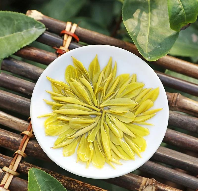 广德,地处安徽省东南部,长三角西部,这里山水相依、生态优越,为茶树生长提供了得天独厚的自然环境。广德黄金芽,正是这片土地孕育出的“黄金精灵”,从品种特性到制作工艺,都凝聚着自然的馈赠与茶人的匠心。广德黄金芽源自境内无性系黄化茶树品种,这种茶树因遗传因素导致叶片呈现独特的黄化特征,是茶树中的珍稀品种。与普通茶树相比,黄化茶树对光照、温度、土壤等环境因子更为敏感,而广德境内温暖湿润的亚热带季风气候、肥沃疏松的酸性土壤,以及云雾缭绕的山间小气候,恰好为其提供了最佳生长条件。