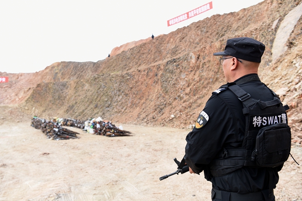 云南省公安机关开展集中销毁非法枪爆物品活动