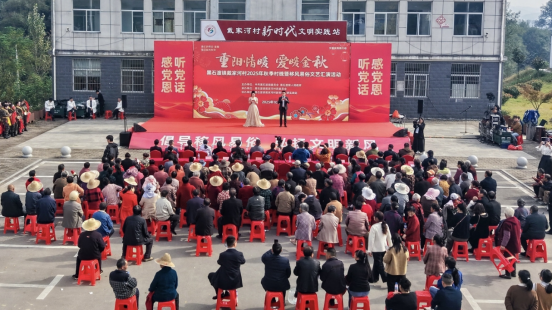 岁岁重阳,今又重阳。在这秋高气爽、丹桂飘香的时节,为传承弘扬中华优秀传统文化,深化“我们的节日”文明实践活动,推动移风易俗落地生根,10月29日,黑石渡镇在戴家河村举办2025年“重阳情暖 爱满金秋”秋季村晚暨移风易俗文艺汇演,邀请干群欢聚一堂,共庆佳节、共话幸福、共倡新风。