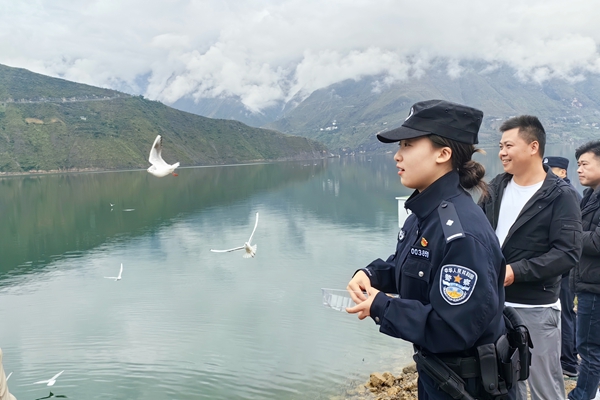 “以前库区里很少能见到这么多红嘴鸥,现在每年冬天都能看到它们的身影,而且数量一年比一年多。”巡逻女警黄圆颂笑着说道。据了解,这样的“警鸥同框”场景,如今在永善县的金沙江沿线已并不少见,这背后离不开当地持续推进的生态保护工作。近年来,永善县聚焦金沙江流域生态治理,通过实施“河湖长+警长”机制,将公安警力与河湖管理深度融合。警方不仅常态化开展库区巡逻,及时排查清理水域安全隐患、打击非法捕捞等行为,还联合社区、志愿者等力量开展生态保护宣传活动,引导群众主动参与到金沙江守护中。