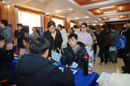 招聘会现场,各展位前人头攒动,“尔滨”学子们手持精心准备的简历,穿梭于各个企业展位之间,或驻足阅读展板上的岗位信息,或与企业招聘人员沟通岗位细节。