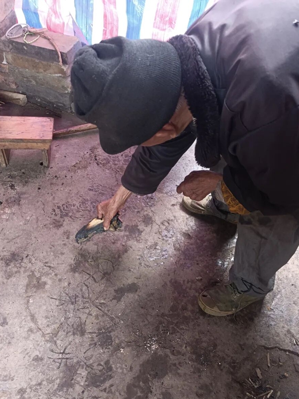 十天后,当民警再次接到老人陪着他办妥所有手续,到银行取到救助金并将其送至家中时,一直沉默的吴大爷,做了一件让在场所有人动容的事。他缓缓走到火盆边,俯身拾起一截温热的木炭,在冰冷的水泥地上慢慢弯下腰,佝偻的身躯微微颤抖,指节因用力而发白,一笔一画间,“共产党好”四个大字渐渐成型。字迹歪斜,却像刻在地上一样有力;没有声音,却比任何语言都更动人。在场民警红了眼眶,这不是锦旗,不是感谢信,却是最质朴、最厚重的“民心答卷”。