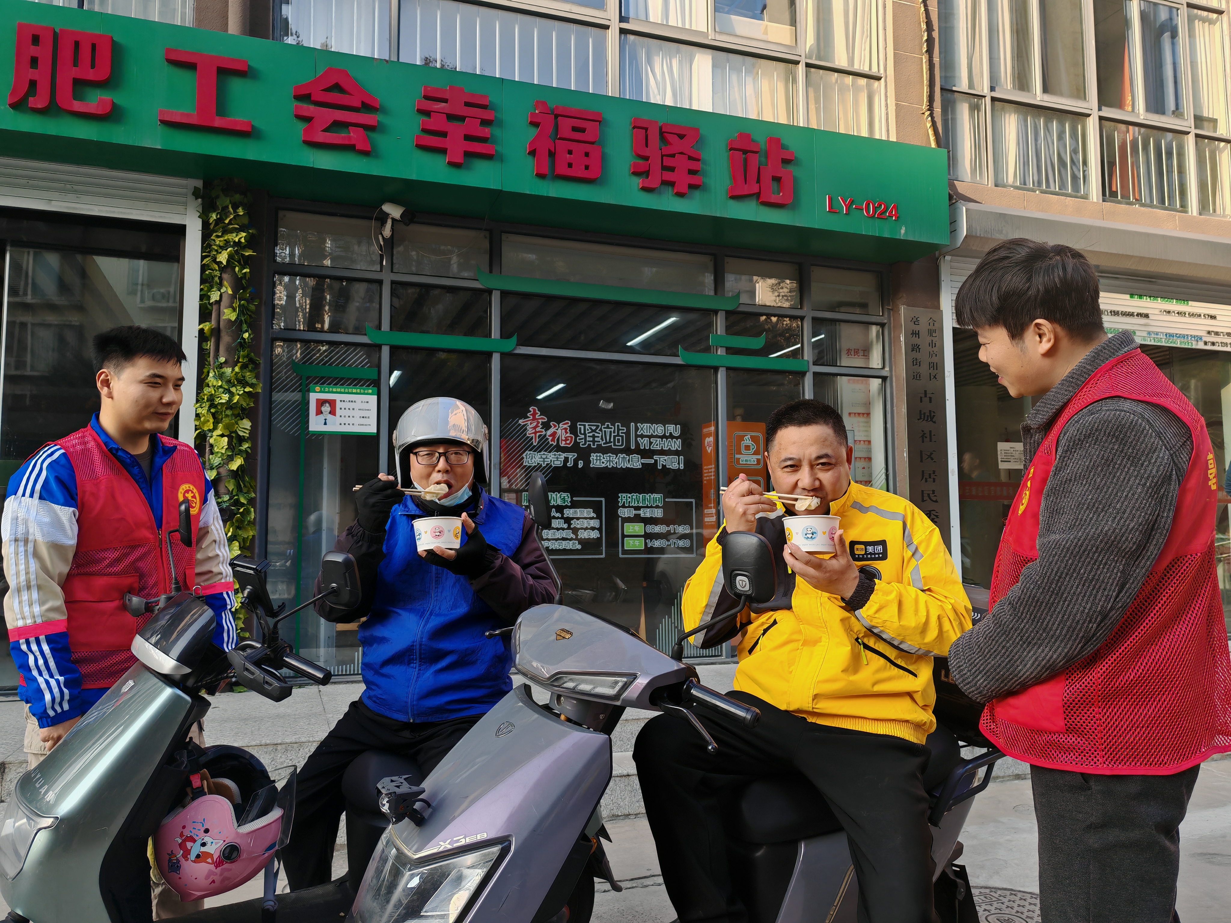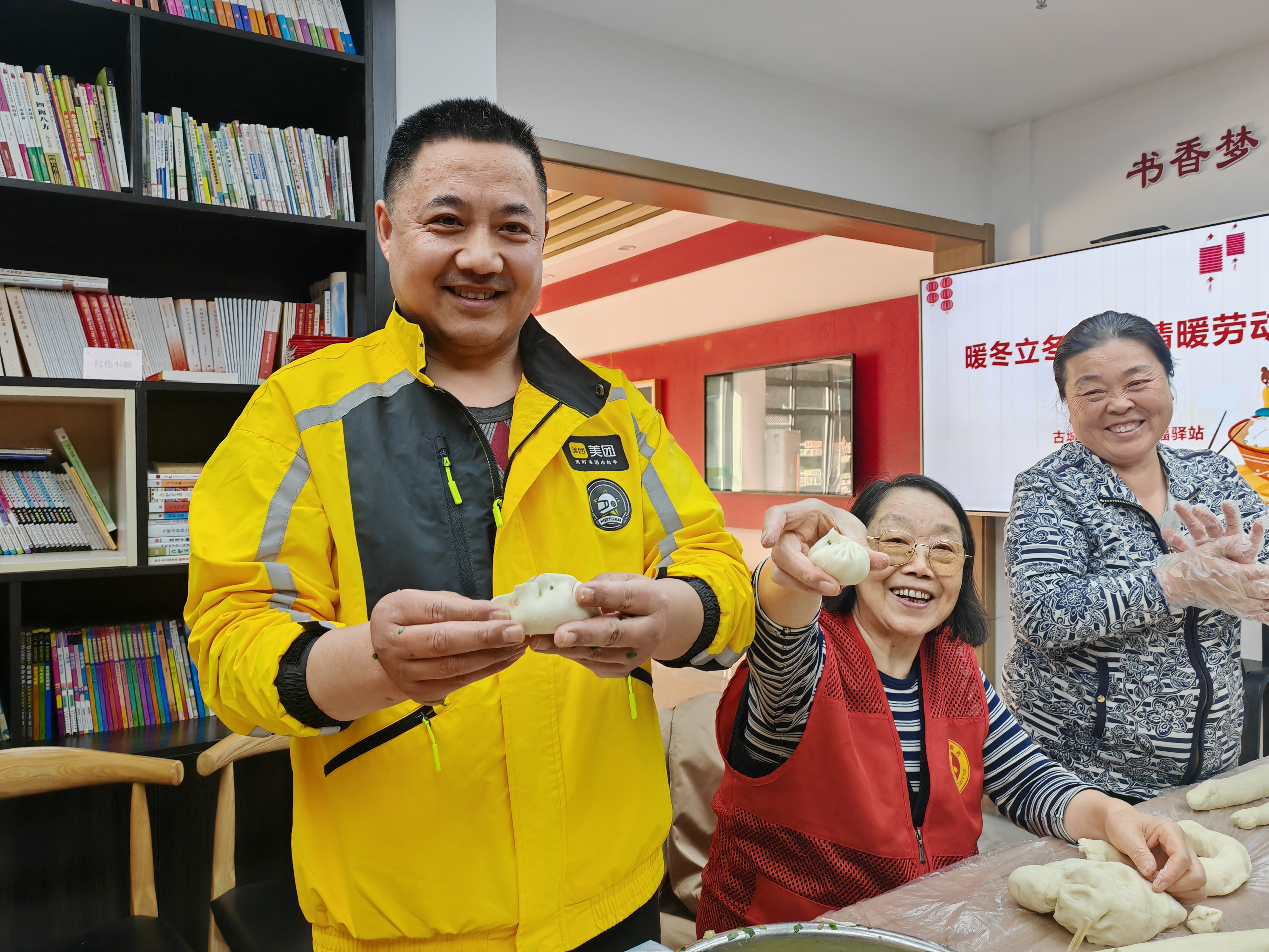 不一会儿,热气腾腾的饺子出锅了。香气瞬间弥漫在整个驿站,引得大家纷纷围拢过来。“这饺子真香,我感觉驿站就像我第二个温暖的家。中秋能吃上月饼,端午能吃上粽子,现在立冬又能吃上热乎乎的饺子,真的感觉好幸福!”一位外卖大哥高兴地说道。他的这番话,说出了大家共同的心声。