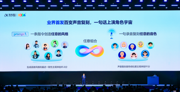 发布会重点首发了两大核心技术。其一是个性化记忆能力,星火X1.5通过构建用户个性化记忆库,实现对用户长期画像、近期反馈、短期对话的综合理解,让AI真正“懂你”。其二是百变声音复刻,基于星火语音大模型,仅需一句录音即可复刻任意音色,并用一条指令创造任意风格的声音。