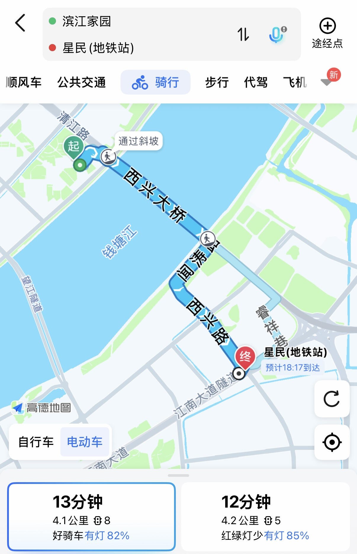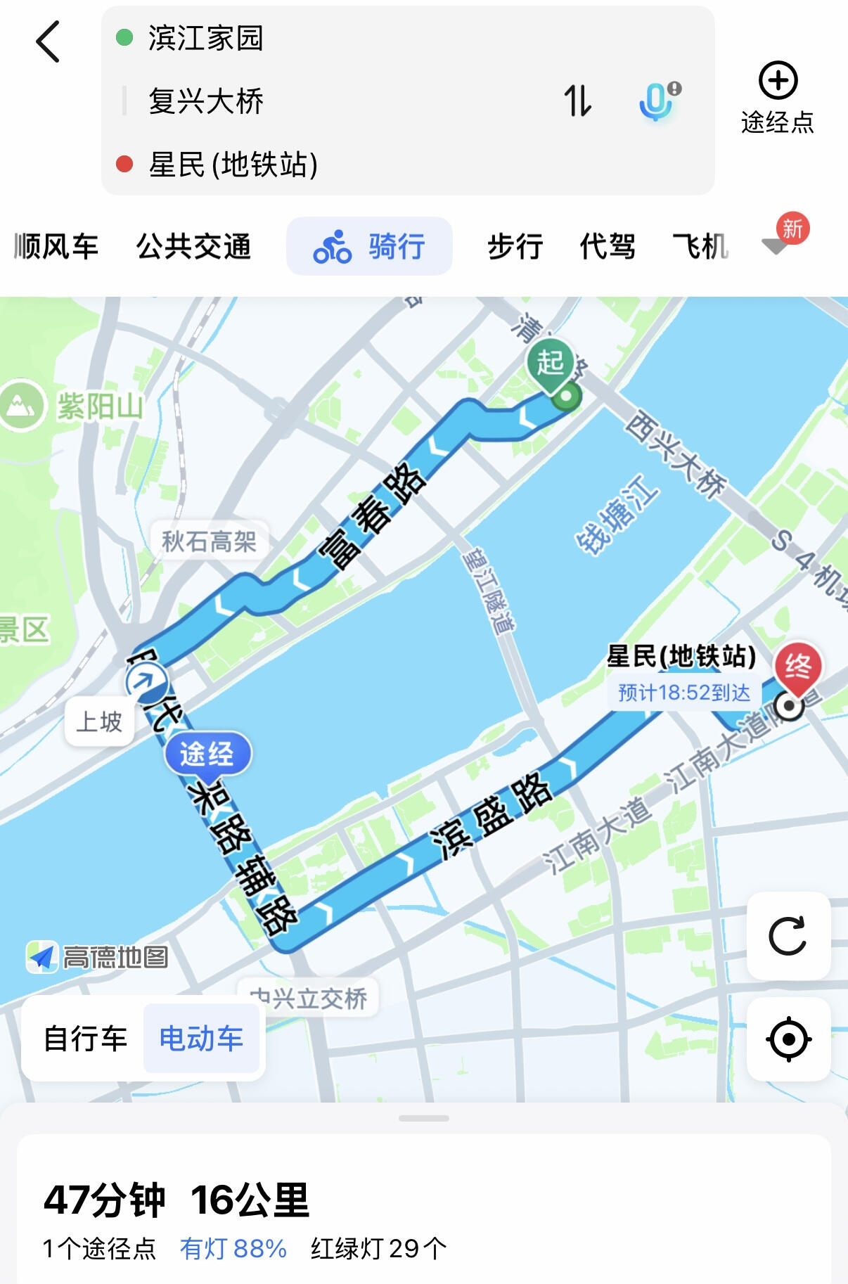经常开电瓶车或骑自行车过江的市民会发现,若绕行,通勤路程可就远了不止一倍。记者查询发现,原本电瓶车只需5-7分钟即可通过钱江三桥,若绕行附近的复兴大桥或彭埠大桥则路程增加约10公里,多耗时起码半小时。