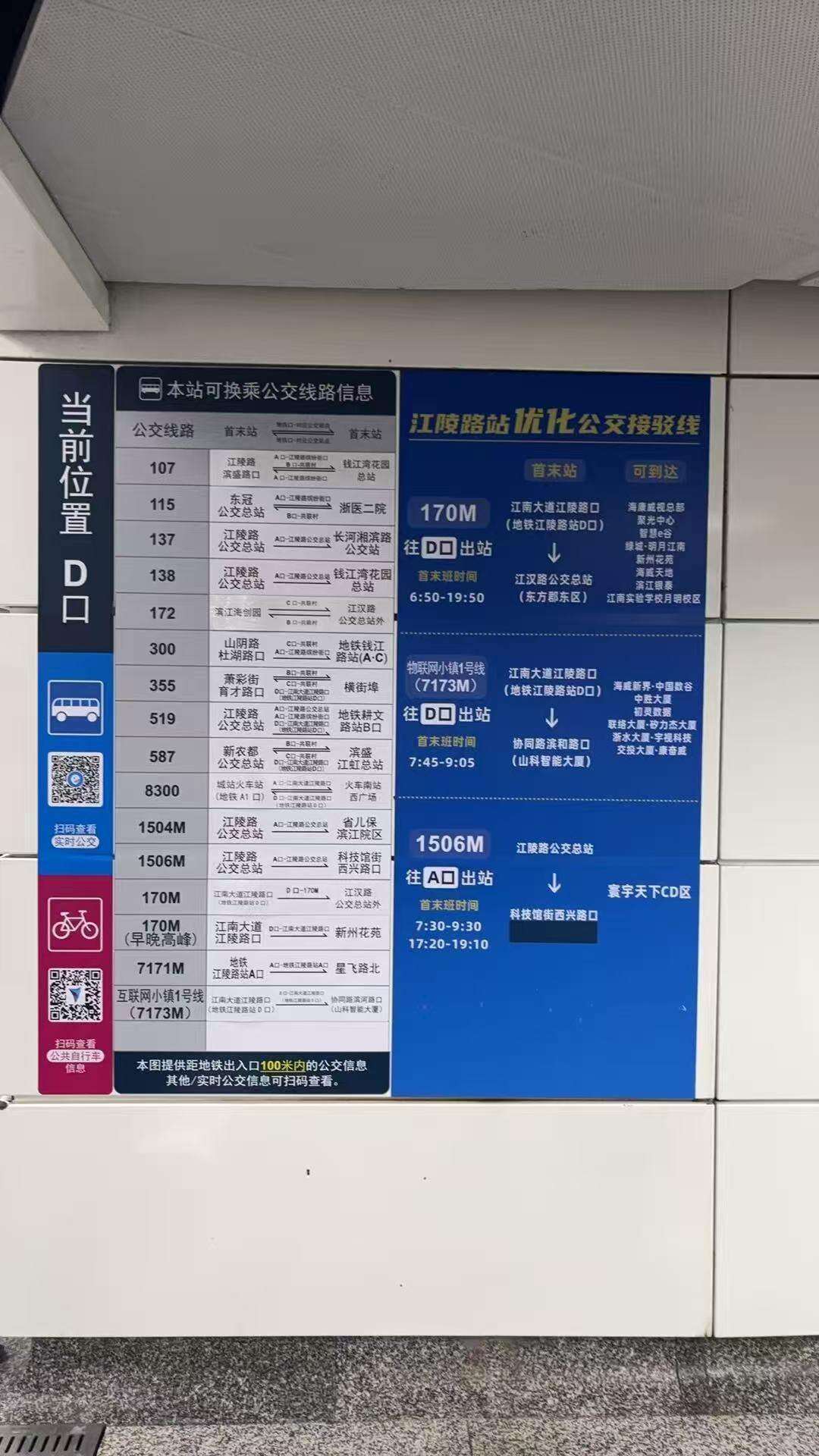 为保障过江乘客的日常出行需求,提升临江车站公交接驳能力,地铁1号线和5号线的近江站、江陵路站、长河站等8个站点张贴公交接驳信息,方便过江乘客了解公交接驳线路,引导乘客乘坐地铁和公交绿色出行过江。