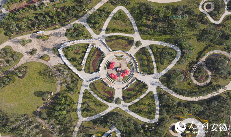 航拍阜阳花博园内的花韵广场。人民网记者王晓飞摄