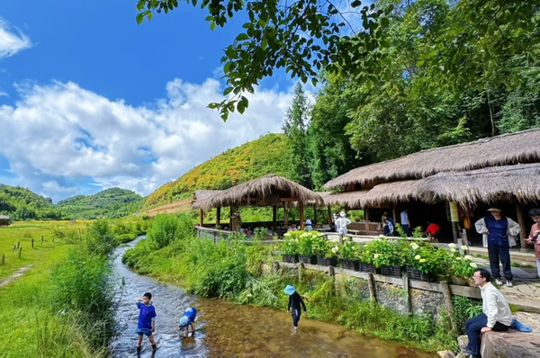 “现在公司以每年每亩180元的价格,租赁永兴群众180余亩山林,让闲置的绿水青山变成了‘生金宝地’,通过聘请当地群众担任领队、服务员,优先采购本地蔬菜、水果、蜂蜜等农特产品,让村民既能上班挣钱,又能顾家种田,实现了‘一地双收’。更重要的是,公司会根据实际接待的游客人数,按每位游客10元的标准返还收益,这笔资金纳入村、组集体经济收入,点滴积累汇成发展活水。自2022年以来,徒步旅游带动永兴村增收110余万元,其中群众增收近90万元。我们用村企联合的‘纽带’,把徒步经济的‘流量’变成了村民口袋里的‘增量’。”永兴村党总支书记康洪青的话语生动又实在。