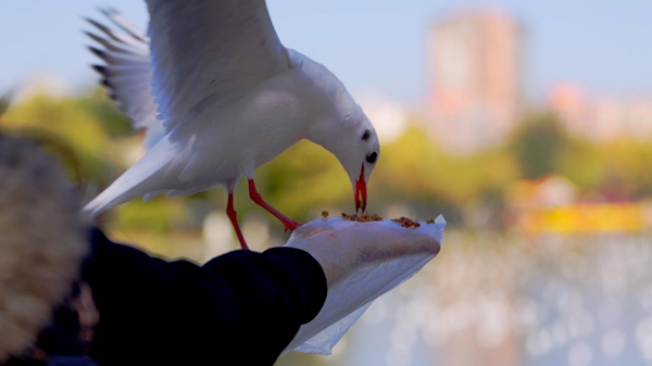 2025年,这场跨越山海的“冬季之约”更添新彩——截至11月中旬,抵昆红嘴鸥总数约达2万只,大部队(以数量超过200只为计)于10月29日正式集结滇池,开启了最佳观鸥季。“第一次这么近距离看海鸥,它们一点都不怕人,太治愈了!”来自哈尔滨的游客李女士举着相机连拍不停,镜头里红嘴鸥掠过肩头,啄食她掌心的鸥粮。她笑着说,“早就听说昆明的‘人鸥之约’,特意带着孩子来感受一下。”