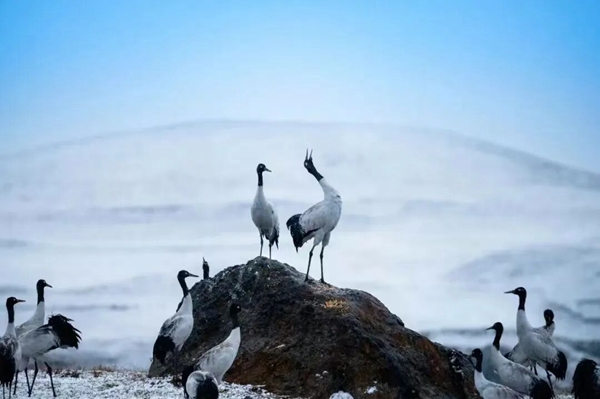 近日,被誉为“高原精灵”的国家一级保护动物黑颈鹤,已先期抵达昭阳区大山包黑颈鹤国家级自然保护区,它们优雅的身影,为昭通的冬季增添了无限生机与诗意。