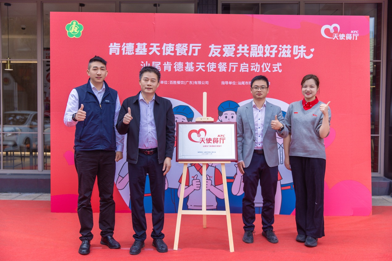 时代在变,不变的是人们对于爱与美好生活的向往。肯德基的陪伴不止美味,更是一份温暖治愈的力量。肯德基将用心满足中国消费者不断升级的餐饮需求,秉承‘永远美味、永远陪伴、永远美好’的品牌理念,持续为消费者带来经典创新的好滋味。进入中国内地近40载,肯德基公益体系夯实了品牌随手公益、注重实效、长期主义、多元发展的公益内核。以爱与善举走进社会不同群体,与其长期共建、共同成长,是肯德基公益肩负的使命。汕尾首家肯德基“天使餐厅”的正式启动,将进一步营造扶残助残、残健共融的良好社会氛围,助力汕尾高质量、高水平发展。