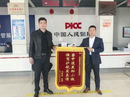 一面锦旗一份信任丰县人保雪中送炭护小微