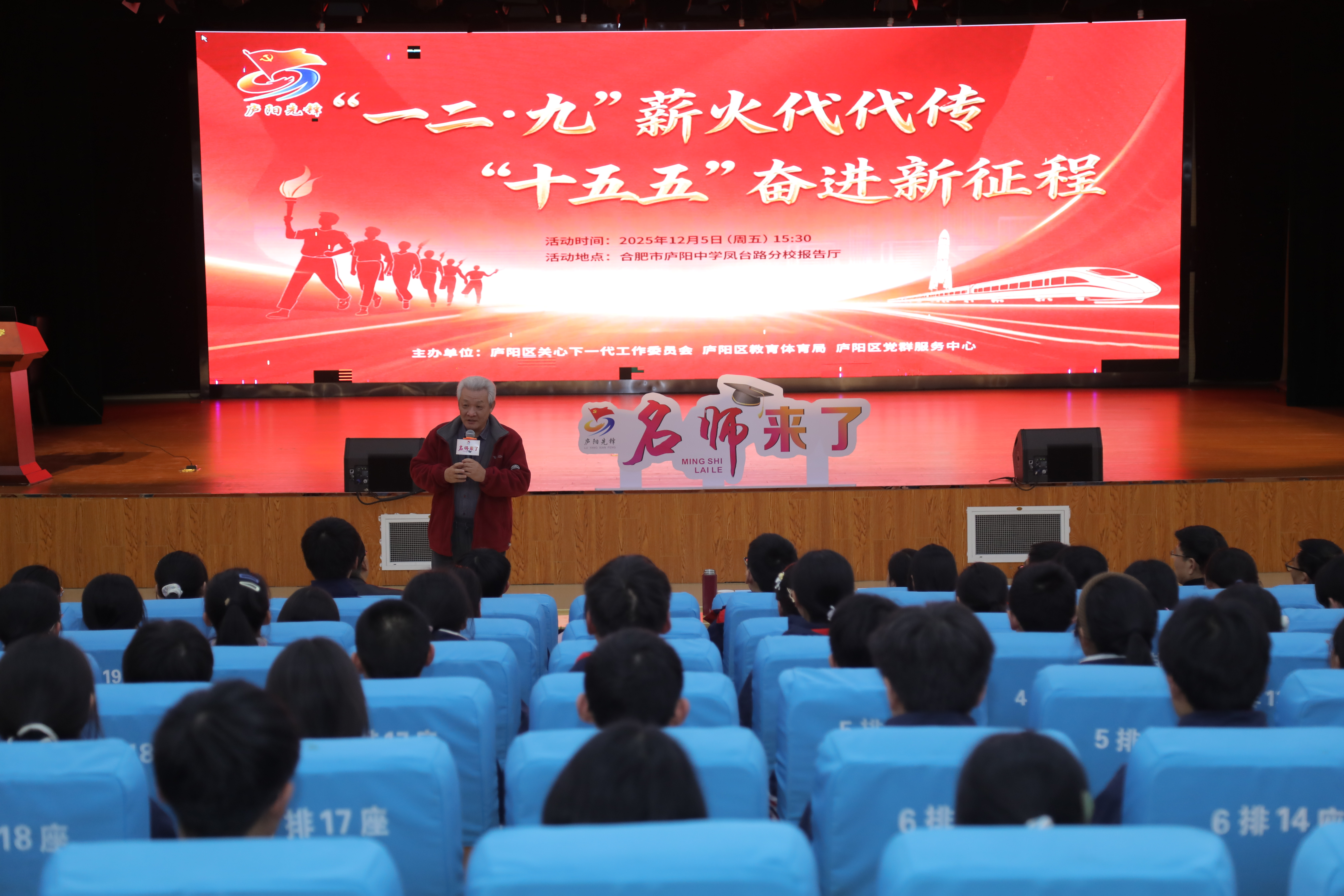 “革命先辈们的英勇事迹,仿佛将我们带回到了那个热血澎湃的年代。”近日,合肥市庐阳中学凤台路分校报告厅内,八年级学生小张在听完第46期“名师来了”红色思政教育公益讲座后,动情地分享感受。这一刻,红色基因,悄然植入青少年学子的心田。