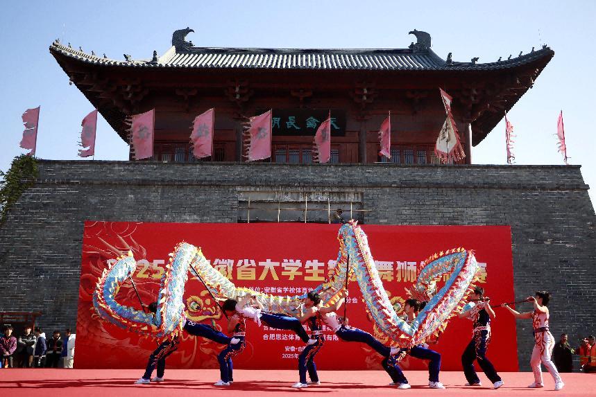 11月29日,2025年安徽省大学生舞龙舞狮锦标赛在肥东撮街精彩上演。来自全省20所高校的403名大学生运动员齐聚一堂,同台竞技,共展龙狮风采,传承中华优秀传统文化。