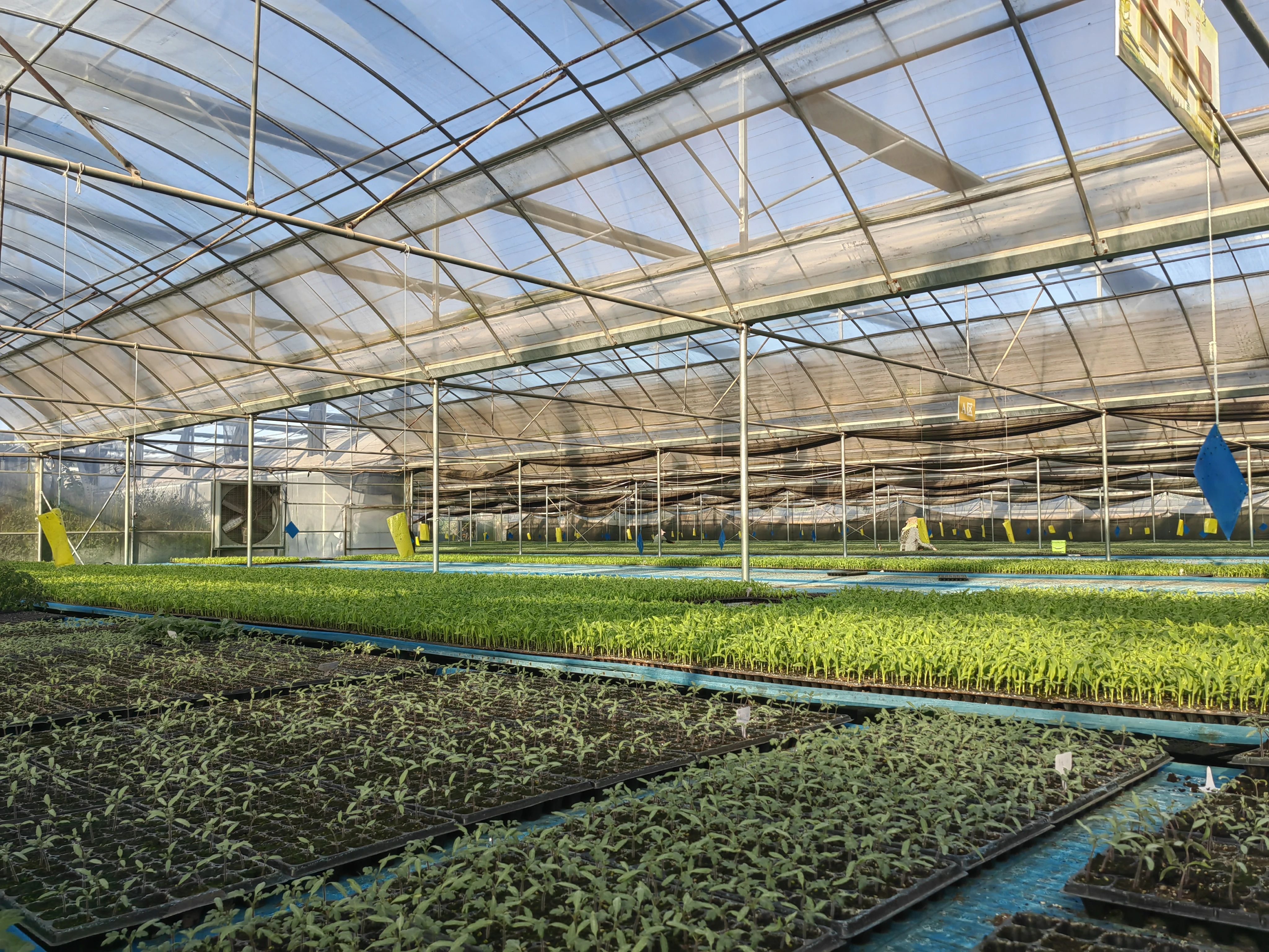 图为云南思农蔬菜种业发展有限责任公司的蔬菜育苗基地标准化育苗大棚。