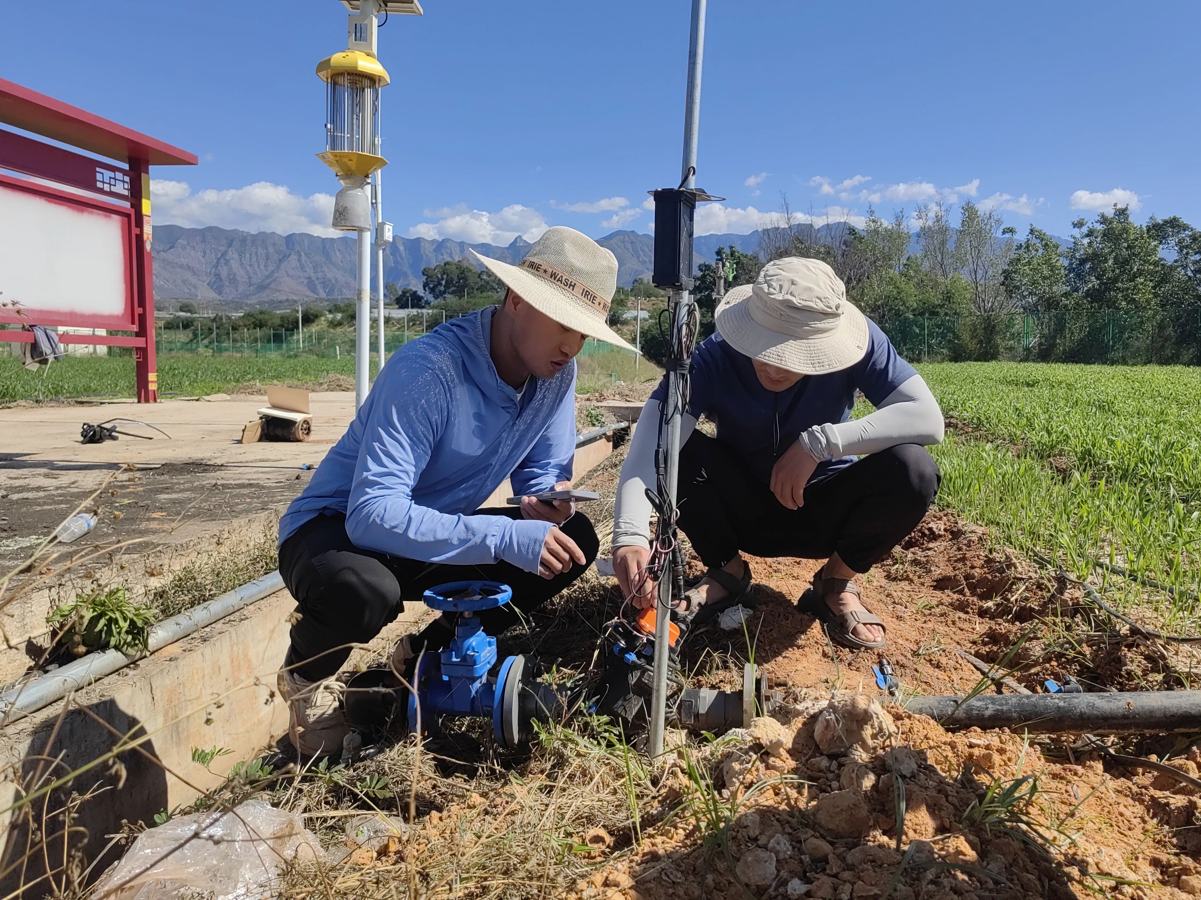 来自西藏自治区农牧科学院的研究人员在用手机远程操控水肥系统。