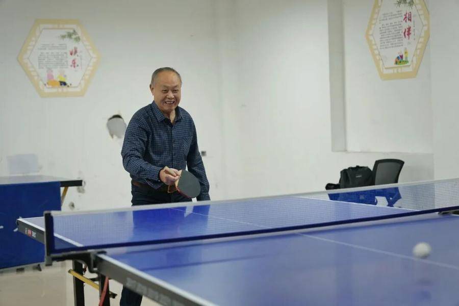 南七街道学府名都小区内,61岁的邹爷爷正陪着10岁的孙子在室内乒乓球台上切磋球技。“自从新装了这些健身器材后,我们下楼就可以锻炼。”
