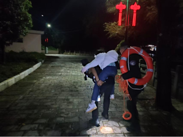 “接住!把救生圈套上!”岸上的罗发成与钱光应急速抛来救生圈和绳索,叶红胜右手死死地托住女子头部,左手拼命将救生圈往她身上套,几乎在力气耗尽的那一刻,救生圈终于稳稳浮起。落水女子被成功托起,到达岸边时,女子已陷入昏迷,在初步急救后,三人顾不上喘口气,轮番背起她冲向警车一路疾驰,直奔医院。
