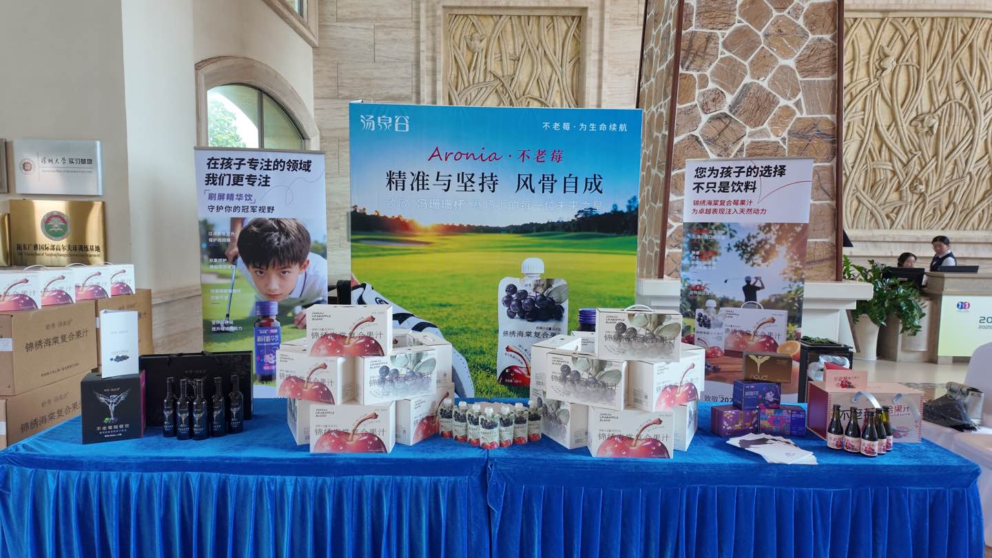 作为本届赛事官方合作伙伴,岭秀山圣汇实业集团旗下“汤泉谷”品牌携不老莓系列产品为赛事赋能,以天然营养助力青少年运动员保持最佳竞技状态。其产品锦绣海棠复合果汁,精选优质不老莓与鸡心果为原料,鲜榨成的100%原浆富含维生素及多种矿物质,为青少年运动员在高强度竞技中补充能量、舒缓状态,成为赛场内外的“健康补给站”。该系列产品的健康属性与高尔夫运动的优雅气质相得益彰,赢得了参赛选手与嘉宾的一致认可,为赛事注入更多活力。