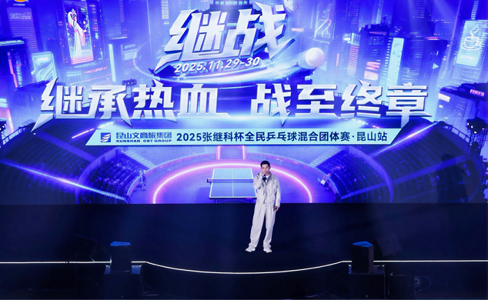张继科亲自为比赛担任解说,让球迷在现场和线上领略了奥运冠军的口才和专业性。(昆山文商旅集团)