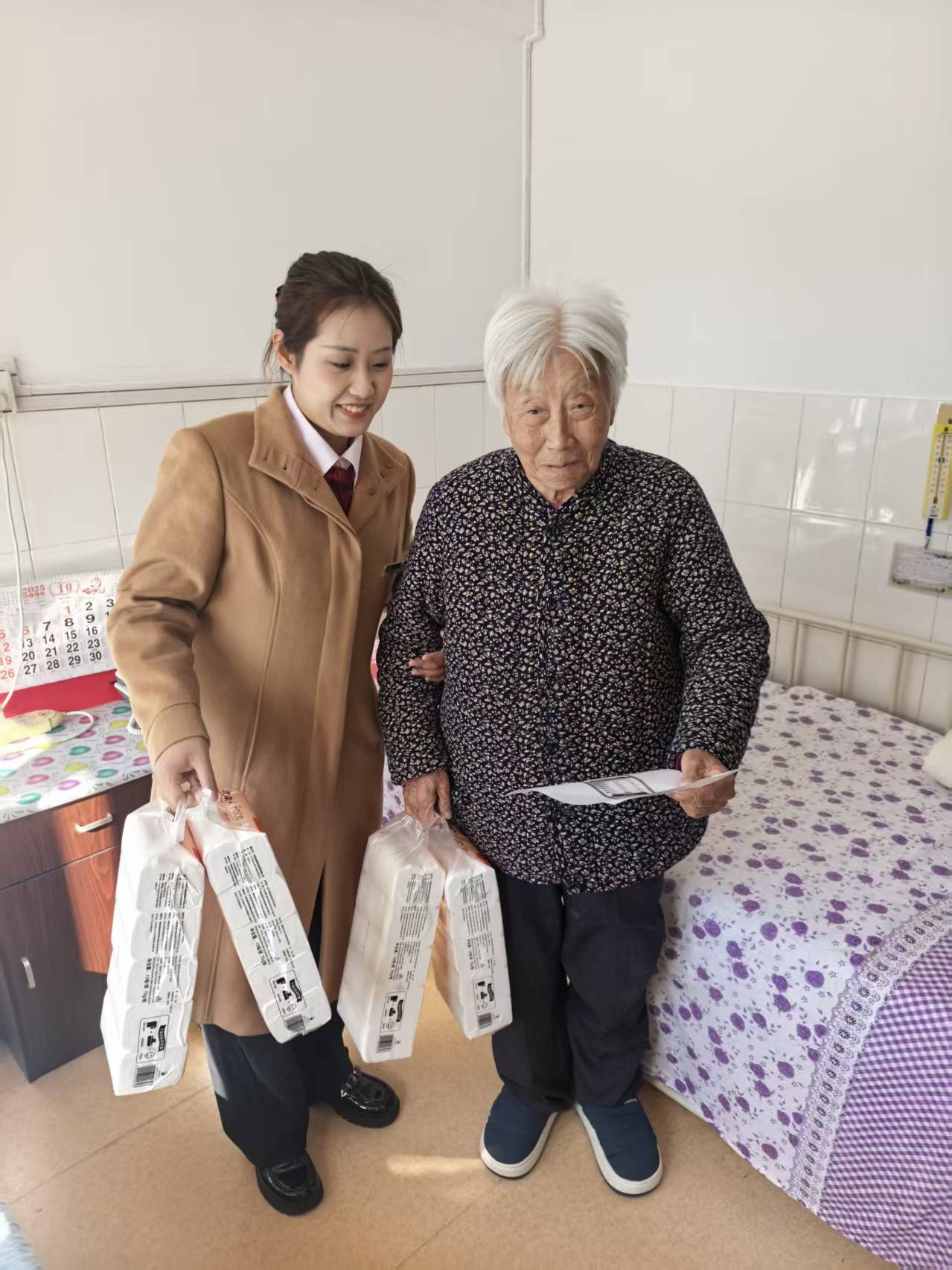 活动现场,志愿者们为老年公寓送去各类生活用品。此外,分行网点的适老化设施亦在活动中亮相:老花镜、大字版业务指南,助听器等,向老人们展现了银行机构为老年群体做出的改变,从环境到流程的全方位优化再到不断提升老年客户服务体验,充分诠释“金融适老化”的深层内涵。