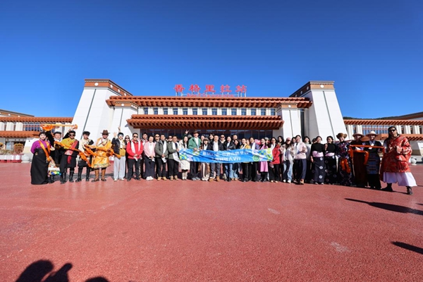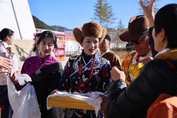 现场氛围在悠扬的弦子声中迅速升温。身着节日盛装的当地群众跳起欢快的舞蹈,旋转的裙摆如同绽放的高原之花。宾客们被这份热情感染,纷纷加入舞蹈行列,在站前广场上形成了同心圆般的欢乐舞阵。歌声、笑声、舞步声交织成冬日的暖流,让初抵雪域的人们瞬间感受到这片土地独有的温度与活力。