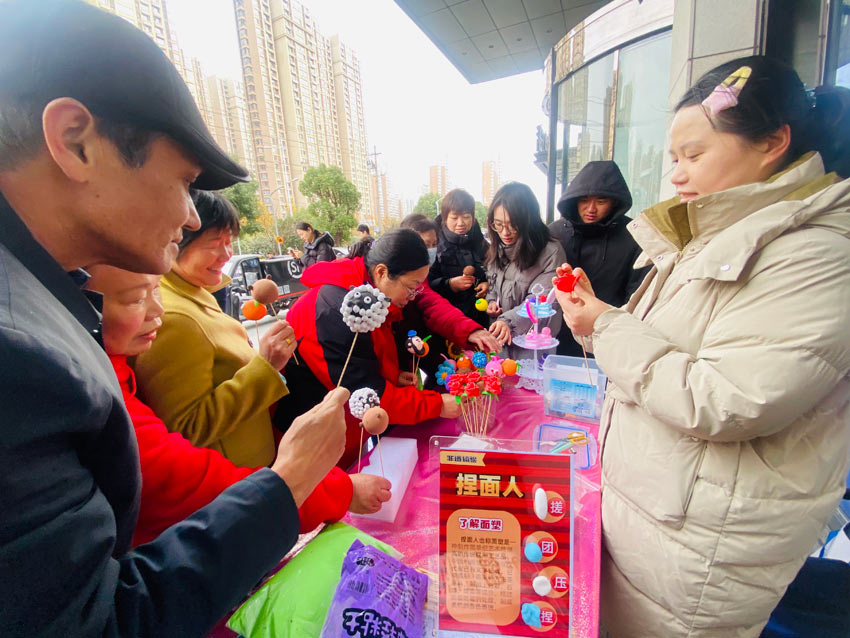 非遗体验区同样人气爆棚,形态各异、栩栩如生的生肖、卡通人物等手工艺品,吸引了众多居民与企业职工驻足观赏,纷纷跃跃欲试,亲身体验传统文化的独特魅力。