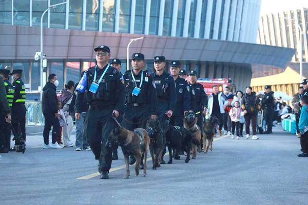赛场之外,治安巡逻犬更是行走的“安全感担当”。它们身着专属“执勤标识”,与民警组成机动巡逻组,穿梭在人群密集的入口、停车场及周边街道。昂首挺胸的姿态、整齐划一的步伐,配上警惕扫视四周的眼神,尽显巡逻“硬汉”风范,让不法分子望而却步。