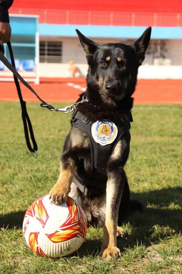 为适配足球赛事的特殊环境,公安机关提前对部分警犬开展针对性训练——让它们适应赛场的嘈杂欢呼声、人造草皮的特殊气味,哪怕看台上呐喊声震天,警犬依旧能保持专注,精准完成任务,专业素养拉满。训练场上,它们是服从命令的“酷学员”;休息时,它们是黏着训导员的“小跟班”,这份双向奔赴的默契,格外动人。