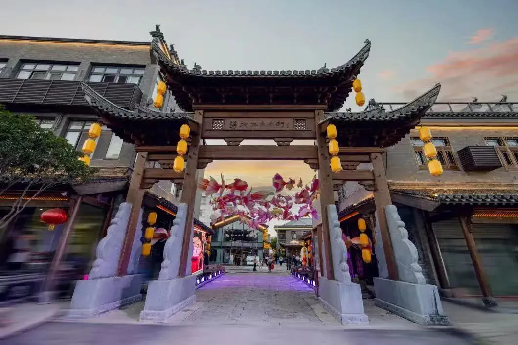 津门水街2026迎新年盛典:万千明灯点亮夜空,彩带雨与光影交织,搭配迎新年水秀、篝火盛宴;“财神、月老、寿星、文曲星、文昌帝君”等空降水街,与游客互动纳福;还有30+场古风情景演出贯穿全街,如《青天巡案》等,游客可穿行其中、即兴“飙戏”。