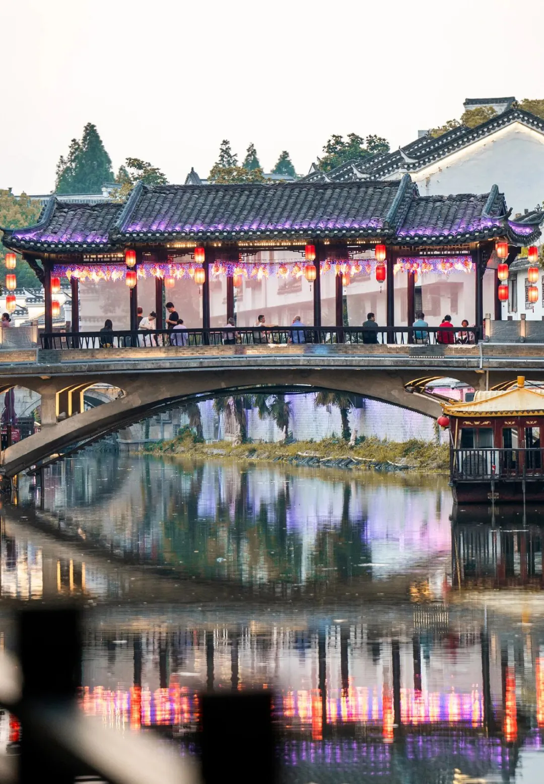 徽园元旦喜乐汇:景区内景观步道悬挂红灯笼、油纸伞,在池塘、水系区域布置荷花灯,营造静谧雅致的徽韵年味。还有多个“新年祈福墙”,一同写下新年愿望。在徽园中心广场及周边区域打造“徽州新年市集”,划分非遗文创区、特色年货区、徽派手工艺品区、亲子潮玩区四个板块,涵盖非遗传承人、本地文创企业、年货商家等。