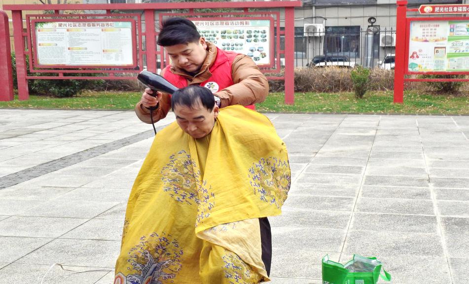 便民服务点设立“邻里互助站”,暖心服务惠民生。磨刀声嚓嚓作响,理发剪上下翻飞,义诊医生耐心询问……便民服务区始终洋溢着温暖的气氛。在党员“红管家”的协调组织下,肥西弘爱志愿者协会、肥光社区幸福之光服务站的志愿者们为居民提供了实实在在的便利。据统计,活动期间共为居民磨利菜刀、剪刀120余把,免费理发45人次,提供健康检查与咨询90余人次,同时还开展了家庭应急知识小课堂现场教学演示。“这剪头的手艺真好!快过年了,理个发精神精神!”刚理完发的陈爷爷对着镜子笑得合不拢嘴。这些看似微小的服务,精准对接了居民日常需求,传递了冬日里党组织关怀的浓浓暖意。