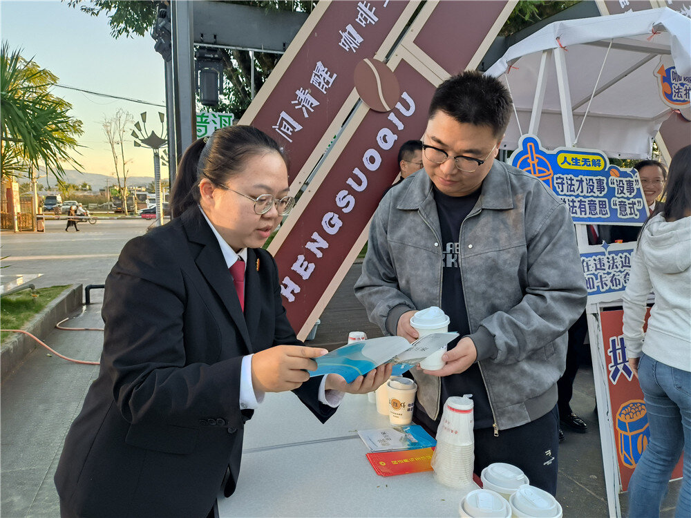 孟连精品咖啡一条街“普法咖啡摊位”普法摊受到旅居云南游客关注 夏方海摄
