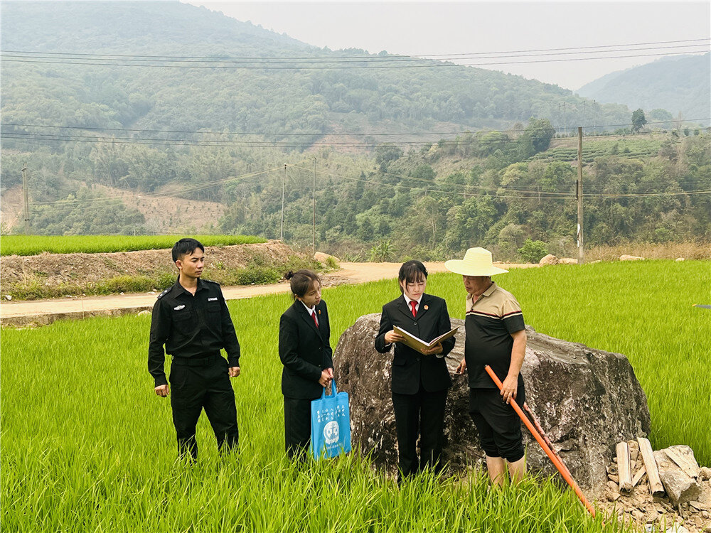 孟连县人民法院勐马法庭庭长张琳在田间回访案件当事人 刘津佟摄