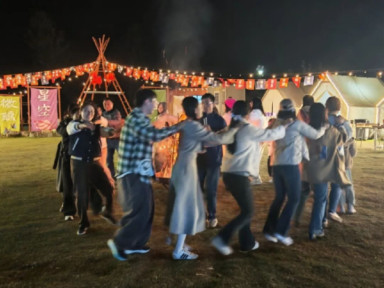途居合肥包公源露营地将宋风雅韵与野奢露营巧妙融合。蹴鞠、投壶、射箭、捶丸等传统体育活动组成沉浸式宋风游园会,带领游客穿越千年,体味古人雅趣。营地特设巨幅画布,邀请游客化身“共创艺术家”,共绘纳斯卡巨画,以色彩勾勒新年愿景,在星空与篝火交织中,度过2026首个难忘之夜。