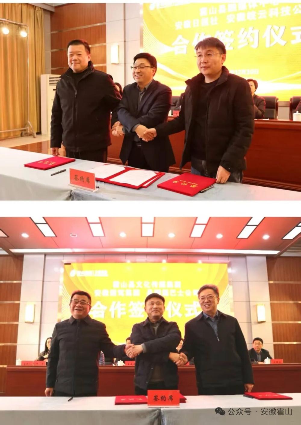 揭牌仪式后,县融媒体中心分别与安徽日报、安徽皖云传媒科技股份有限公司签订合作协议,携手探索媒体融合新路径;新成立的县文化传媒集团分别与安徽迎驾集团、顺通巴士有限公司达成合作共识,助力地方文化产业与实体经济深度融合。
