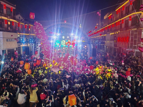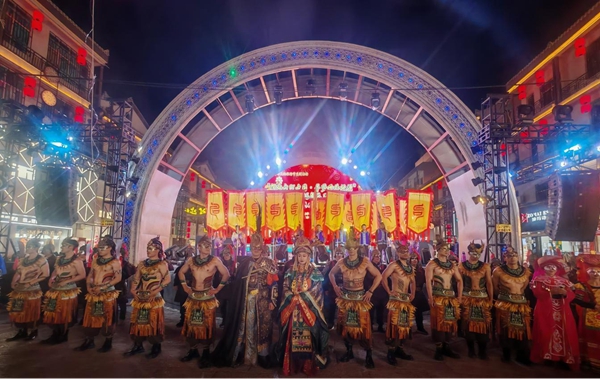 12月31日晚,云南省文山壮族苗族自治州广南县以“神秘句町古国,寻梦世外桃源”为主题,融合非遗化妆舞会、句町王出巡等辞旧迎新狂欢系列创意活动,带领万人跨越时空藩篱,让古老的句町文化焕发青春活力与时尚魅力,激活跨年夜间消费活力,延长游客驻足时光,点亮广南“夜璀璨”。