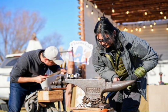 在火系玩家聚集的BC工坊现场,当焰火从夜空走入掌心,“玩火”便不再只是一个动词,它成了一场人人都能参与的创作仪式。从劈柴烧信的BC火趣营,到敲铁成器的焰火工坊;从野火厨房的焦香炊烟,到星火挑战的原始取火……在火光之下,玩家没有门槛,热爱不分段位,每个人都找回了双手造物的本能快乐。