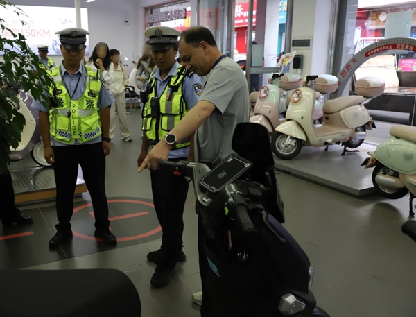 (昭阳交警联合市场监督部门到电动自行车销售店检查)