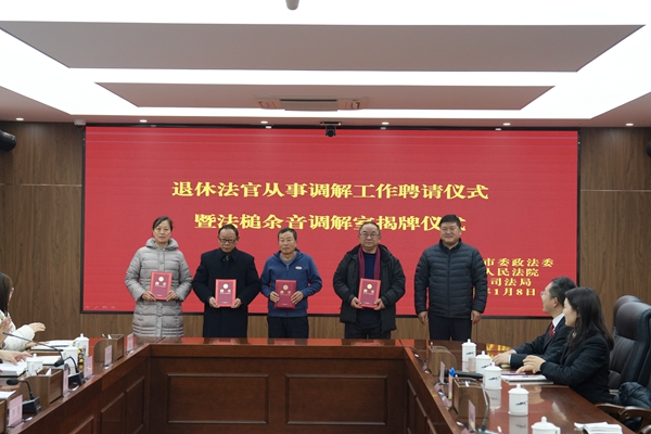 为深入践行新时代“枫桥经验”,充分发挥退休法官专业优势助推基层矛盾纠纷源头化解,1月8日,云南省昆明市安宁市人民法院举行退休法官从事调解工作聘请仪式暨“法槌余音调解室”揭牌仪式,标志着该院以退休法官为核心的专业化调解平台正式启用。