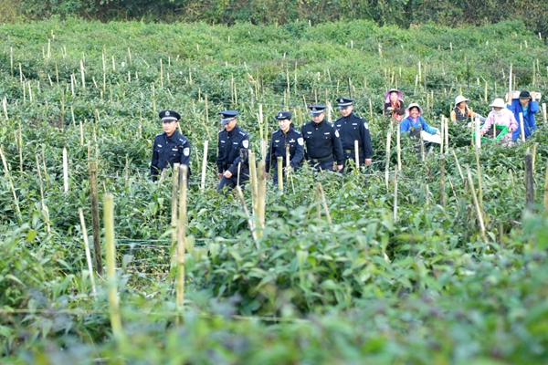 漫山红果缀满枝头,5000余亩红果参不仅结出了群众增收的“致富路”,更长成了边疆乡村振兴的“希望树”,马白派出所用坚守与担当,以平安护航产业发展,在边疆大地上书写“平安护产业、小果富乡亲”的精彩答卷。(马关县公安局、文山州公安局供稿)