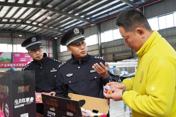 同时,派出所构建起全链条安防体系,对辖区内现有的10多处大小分拣厂常态化推行周排查、月研判机制,重点检查设备运行、电路消防等环节,针对红果参运输路线长、保鲜要求高的特点,在主要通道和重点路段加密巡逻频次、动态护航车辆,严厉打击盗窃、滋扰等违法犯罪,确保新鲜果实及时送达市场,用平安守护让“致富果”一路畅销。