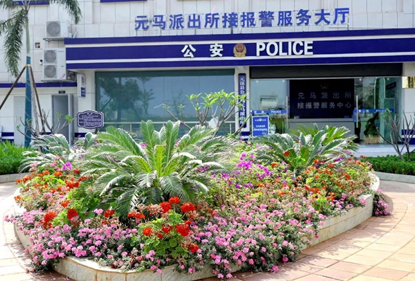 在云南省楚雄州元谋县元马派出所接处警大厅门口,一抹藏蓝与一片绿意温柔相遇,这里没有高墙隔阂,只有开放拥抱,这里不仅是警务阵地,更是9.8万康养旅居者的“温馨会客厅”。